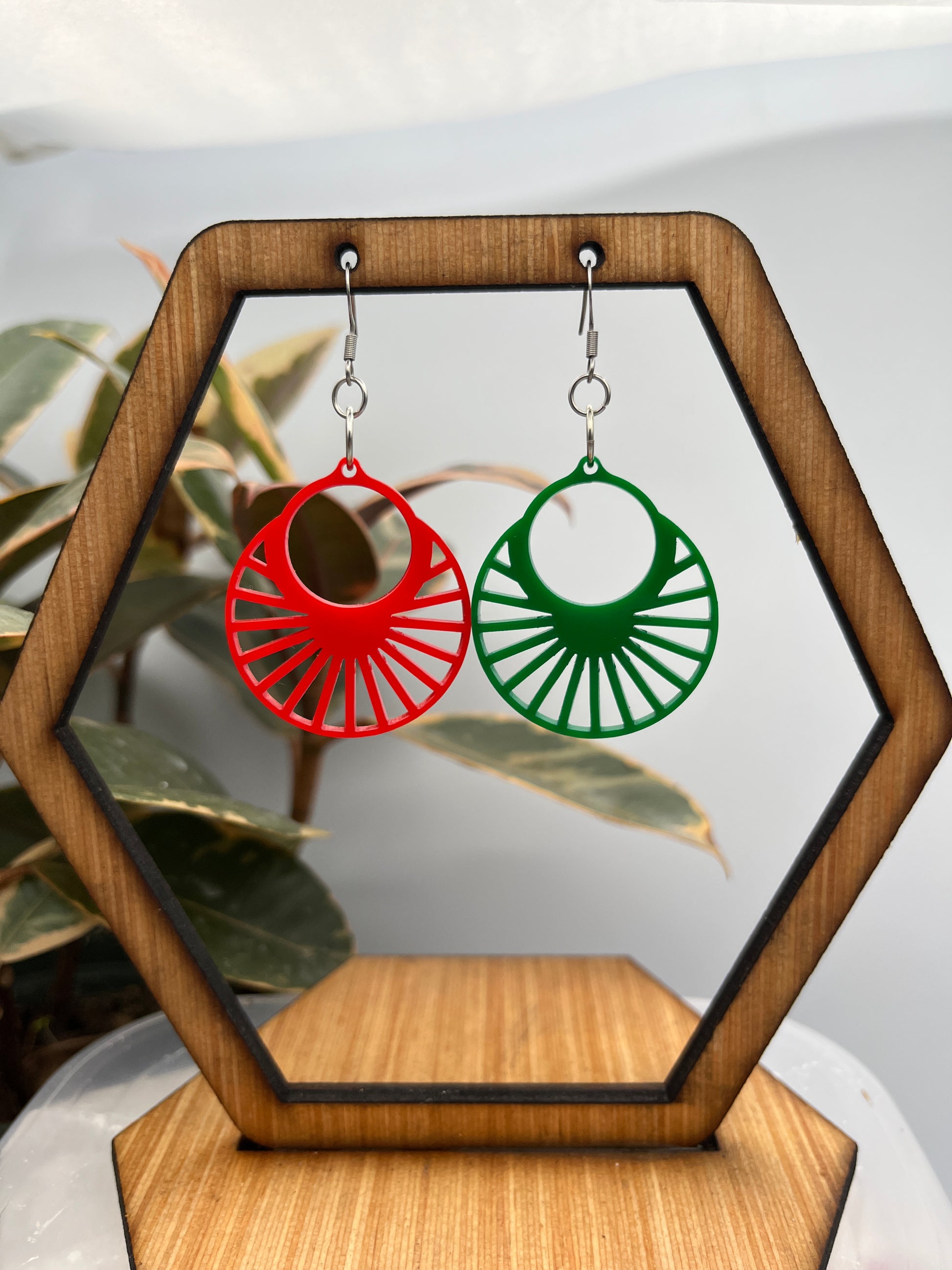 Acrylic with hypoallergenic stainless steel ear hooks.