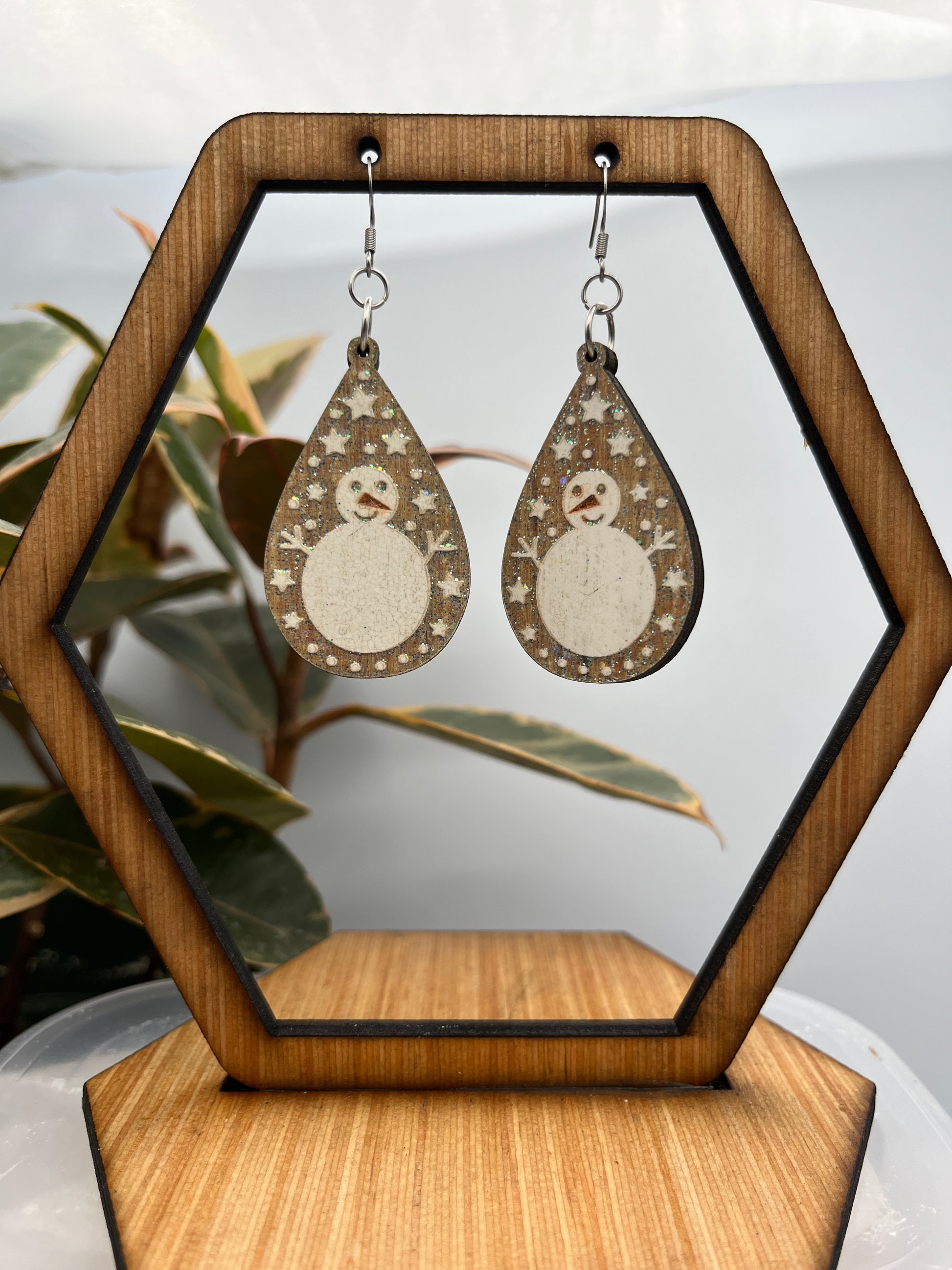 Painted wood with hypoallergenic stainless steel ear hooks.